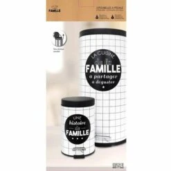 THE HOME DECO FACTORY Poubelles Avec Seau Amovible La Vie En Famille (Lot De 2) Noir – Blanc