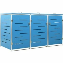 VidaXL Abri Pour Trois Poubelles 207×77,5×115 Cm Inox – Bleu