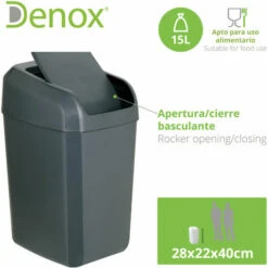 DENOX Poubelle Industrielle Avec Couvercle Plastique Noir 50 L – Black
