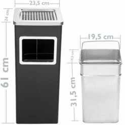 PrimeMatik – Poubelle Rectangulaire Avec Cendrier Couleur Noir