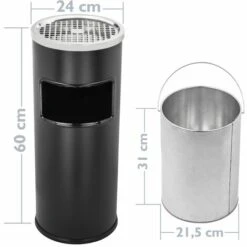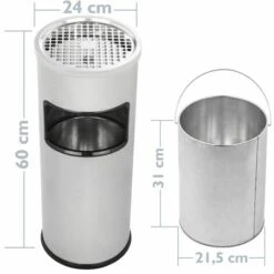 PrimeMatik – Poubelle Circulaire Avec Cendrier En Acier Inoxydable