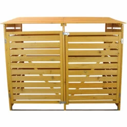 MONSTER RACKING Monstershop Double En Bois Poubelle à Roulettes Store Extérieur Jardin Verrouillable Verrouillage Abri De Poubelle Avec Couvercle à Charnière – Couleur Naturelle