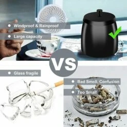 PERLE RARE Cendrier En Céramique Avec Couvercle, Cendrier Coupe-vent Intérieur Et Extérieur (noir)