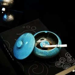 PERLE RARE Cendrier En Céramique Avec Couvercle, Cendrier Coupe-vent Intérieur Et Extérieur (bleu)