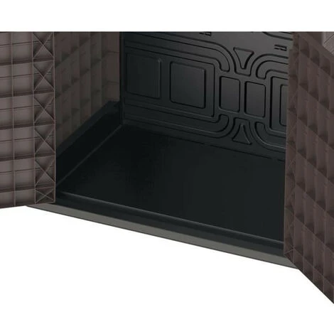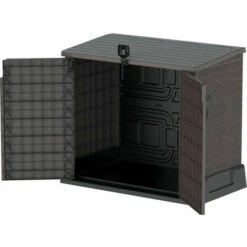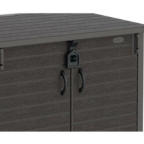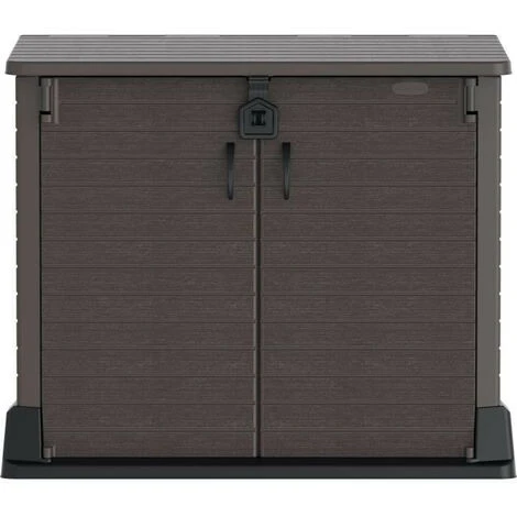 Armoire de rangement Duramax StoreAway 850L Peut servir d’abri de jardin en plastique, de rangement ou de cache poubelle. Durable et solide : idĂ©al pour les outils, les vĂ©los, les barbecues et 2x 120L poubelles, 130 x 74 x 110 cm, marron