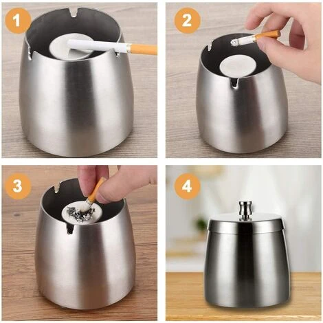 Qualité Acier inoxydable Cendrier en acier inoxydable épaissie et polie est ferme et durable, en gardant sa forme, ne vous grattez jamais votre main. Il a des antioxydants et une résistance à la corrosion, longue durée de vie.