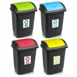 Les poubelles SWING sont recouvertes d’autocollants avec des symboles de dĂ©chets individuels (plastique, papier, verre, mĂ©tal).
