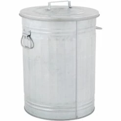 Poubelle galvanisé à couvercle séparé et poignées pratiques.