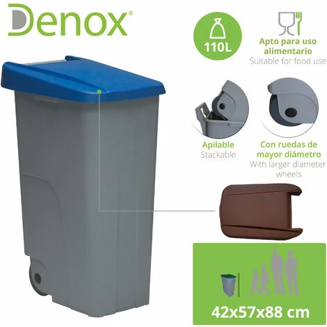 Conteneur avec roues et poignĂ©e. Couvercle fermĂ©. CapacitĂ© 110 L. EmboĂ®table et empilable pour faciliter le transport. Plage de tempĂ©rature: -10°/+120°. spĂ©cifique pour l’usage: alimentaire.
