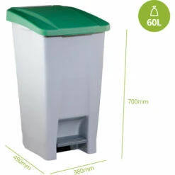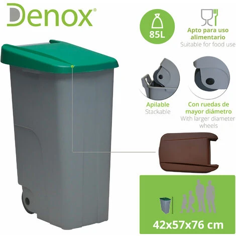 Paquet de recyclage avec un ensemble de conteneurs de recyclage scellés de 85 litresDes poubelles professionnelles et communautaires pour faciliter le recyclage des déchetsEmpilable et sur rouesDiamètre de la roue principale, ø 145 mm Dimensions (mm) : 420 x 570 x 760Capacité : 85L chacun.Au total, 2 poubelles de 85 litres chacune, de couleur vert/jaune.