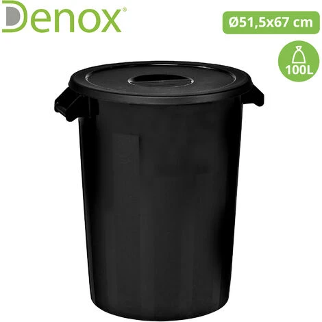 Seau industriel de 100 litres. NoirPoignées ergonomiquesBase ajustée et empilable sur le couvercleBase avec roues disponible Mesures (mm) : ø 515 x 670