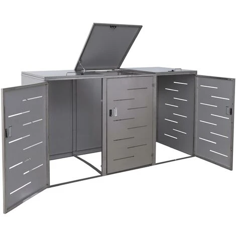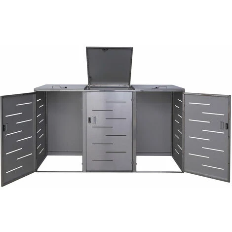 Enveloppement pour 3 poubelles HHG-809, box pour poubelles, revêtement, extensible, 108x61x76cm ~ acier affiné