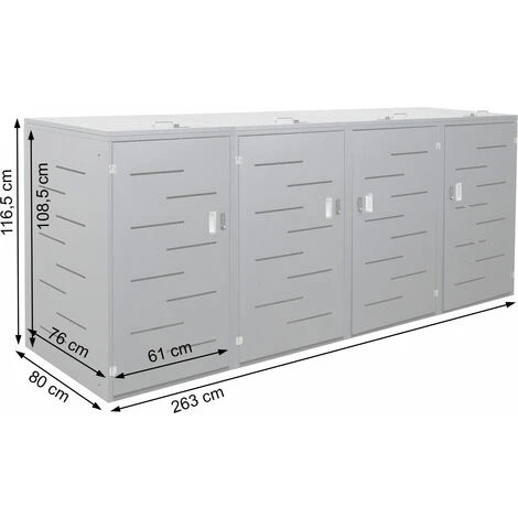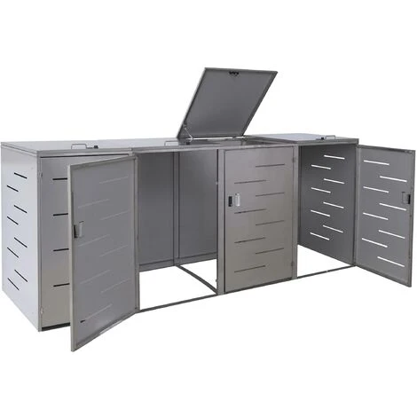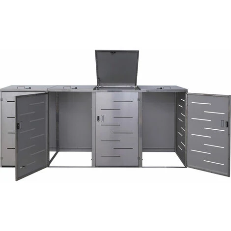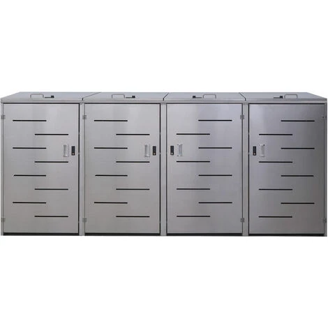 Enveloppement pour 4 poubelles HHG-323, box pour poubelles, revêtement, extensible, 108x61x76cm ~ acier affiné