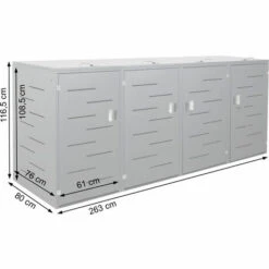Cet enveloppement pour 4 poubelles est une combinaison de notre enveloppement pour 1 et pour 3 poubelles. Il n’existe pas de cloison de sĂ©paration entre les rayons sĂ©parĂ©s d’un enveloppement pour 2 ou 3 poubelles.