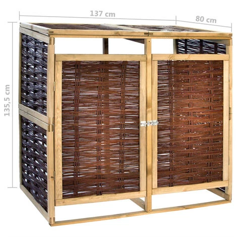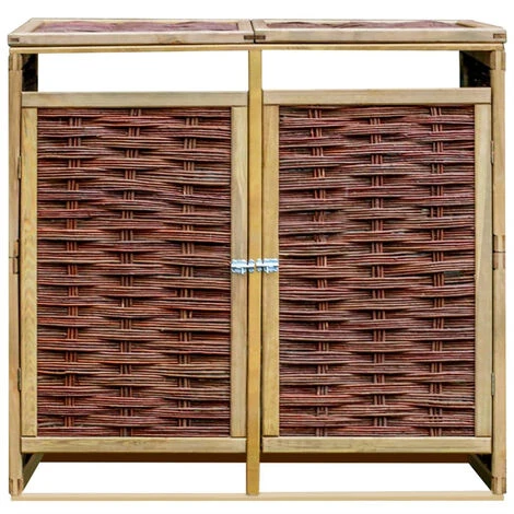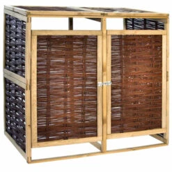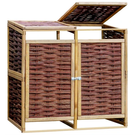 L’abri de stockage a deux portes Ă ouverture individuelle Ă l’avant qui permet aux poubelles d’ĂŞtre facilement enlevĂ©es et vidĂ©es. Il est Ă©quipĂ© d’un verrou frontal pour maintenir la porte bien fermĂ©e. Cet abri de poubelle double est fait de pinède et d’osier naturel, ce qui le rend non seulement rĂ©sistant aux intempĂ©ries, durable, mais ajoute Ă©galement un style rustique Ă votre espace de vie extĂ©rieur. Avec le matĂ©riel de montage inclus, le cache-poubelle est facile Ă assembler.