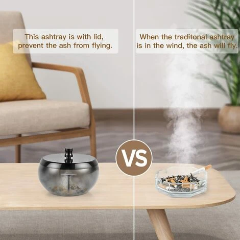 ăConception coupe-ventă Cendrier Ă cigarettes pour l’extĂ©rieur avec couvercle pour empĂȘcher l’eau de pluie de tomber et les cendres de souffler partout. Le cendrier sans fumĂ©e peut garder la table complĂštement propre, isoler l’odeur des mĂ©gots de cigarette et maintenir l’air frais pour vous offrir, Ă vous et Ă vos invitĂ©s, l’expĂ©rience de fumer la plus agrĂ©able.