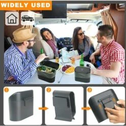 Pratique : le porte-poubelle portable est très pratique. La poubelle prend peu de place, mais vous offre néanmoins toute la capacité des déchets, sans prendre toute la liberté de mouvement. Vous pouvez le ranger entre les sièges, dans le coffre, dans un porte-boisson, dans la console centrale, dans la porte ou partout où vous le souhaitez.