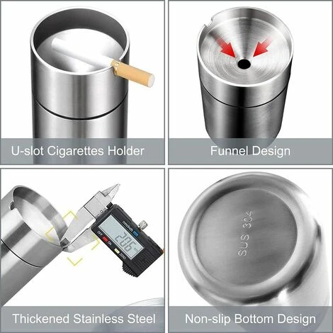 RĂ©sistant au vent et Ă la pluie : le cendrier tempĂŞte en acier inoxydable avec couvercle peut efficacement empĂŞcher la fumĂ©e de s’envoler pour garder votre Ă©tabli ou votre bureau propre. Ne pas exposer Ă des substances nocives. Le cendrier tempĂŞte pour l’extĂ©rieur est rĂ©sistant aux odeurs et aux tempĂŞtes, peut cacher les mĂ©gots de cigarettes disgracieux.