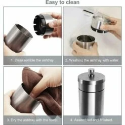 Facile à nettoyer : la structure amovible du cendrier en acier inoxydable peut être facilement divisée en 3 parties. Le corps lisse facilite le nettoyage. Pas de place pour cacher la saleté.