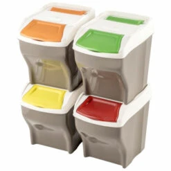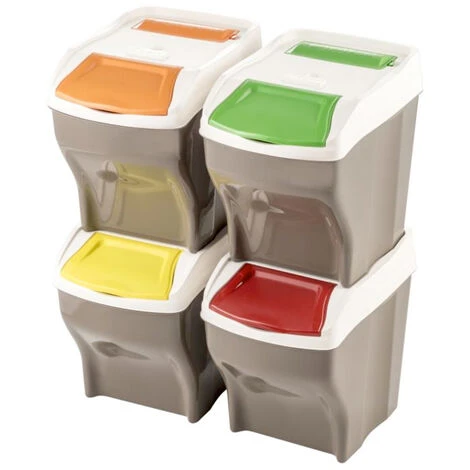 Poubelle pour la collecte sélective des déchets, composée de 4 compartiments modulaires