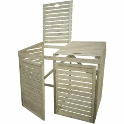 Cache poubelle double « Idaho » Nous vous proposons ce magnifiquecache poubelle. Lecache poubelle double « Idaho »possède unestructure en acieravec deslames en bois horizontales. Il a été conçu afin d’accueillirdeux conteneurs de 240 Lchacun. Sastructure en acierest idéale enextérieurpuisqu’elle est résistante aux intempéries mais également aux rayures et à la rouille. Sa couleur Anthracite lui permet de s’intégrer facilement dans votre extérieur. Couleur : Anthracite. Matière : Acier et lames en bois verticales. Dimensions hors tout : 131.5 x 80 x 116.5 cm. Dimensions intérieures : 131 x 80 x 116 cm. Nombre de porte : 2. Dimensions porte : 101 x 57.8 x 2 cm – Epaisseur : 0.8mm. Les + : Taille max appropriée pour les ordures : 240 L x 2 Résistant aux UV Anti-rouille Résistant à l’eau. Système de maintien du couvercle : Piston à air comprimé. Colisage : 2 colis : – 1,17 x 0,855 x 0,155 m, 31,75 kg – 1,375 x 0,835 x 0,115 m, 28,9 kg. Poids : 52.8 kg.