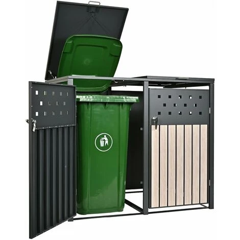 HABITAT ET JARDIN Cache Poubelle Double « Idaho » – 131.3 X 80 X 116.5 Cm – Anthracite