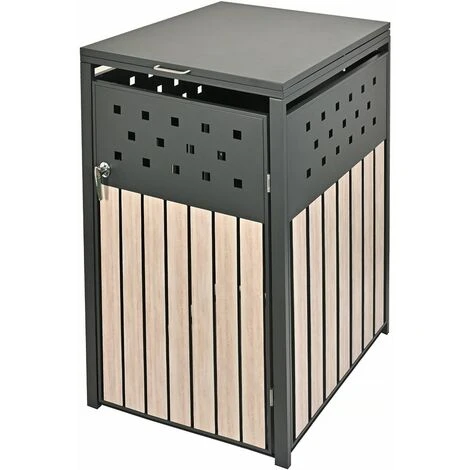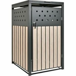 Cache poubelle « Idaho » – 67.5 x 80 x 116 cm – Acier et lames en bois verticales – AnthraciteCache poubelle « Idaho »