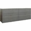 Ce cache-poubelles Ă roulettes est idĂ©al pour dissimuler vos poubelles dans le jardin. L’abri de stockage a des couvercles de levage, qui peuvent ĂŞtre ouverts pour un accès facile au conteneur pour dĂ©poser les ordures. Il a Ă©galement des portes qui s’ouvrent avec un système de verrouillage Ă l’avant pour que le bac puisse ĂŞtre facilement retirĂ© et vidĂ©. Il gardera Ă©galement les intrus Ă fourrure Ă distance. Cet abri Ă poubelle Ă roulettes, en rĂ©sine tressĂ©e, est très robuste, durable, rĂ©sistant Ă l’eau et Ă la pourriture. Ce rangement pour poubelle est parfait pour la dĂ©coration de votre jardin. Cet article est Ă©galement facile Ă assembler. Veuillez noter que les poubelles Ă roulettes ne sont pas incluses dans la livraison. Remarque : il est recommandĂ© de recouvrir le produit pendant la pluie, la neige ou le gel.