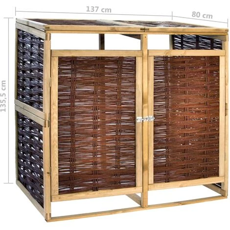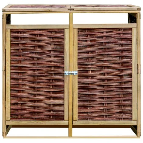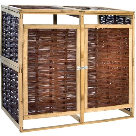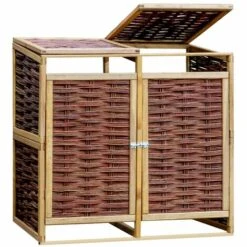 Cet abri en bois pour poubelles doubles est idĂ©al pour cacher vos poubelles des regards dans le jardin. L’abri de stockage a deux portes Ă ouverture individuelle Ă l’avant qui permet aux poubelles d’ĂŞtre facilement enlevĂ©es et vidĂ©es. Il est Ă©quipĂ© d’un verrou frontal pour maintenir la porte bien fermĂ©e. Cet abri de poubelle double est fait de pinède et d’osier naturel, ce qui le rend non seulement rĂ©sistant aux intempĂ©ries, durable, mais ajoute Ă©galement un style rustique Ă votre espace de vie extĂ©rieur. Avec le matĂ©riel de montage inclus, le cache-poubelle est facile Ă assembler. Remarque : Les poubelles Ă roulettes ne sont pas incluses dans la livraison. Veuillez noter que le bois est un produit naturel pouvant prĂ©senter des imperfections.