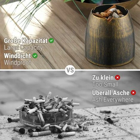 - Coupe-vent et stable: ce cendrier est en acier inoxydable et contient des cendres et des mĂ©gots de cigarettes Ă l’intĂ©rieur mĂŞme par temps venteux. IdĂ©al pour la terrasse, le balcon, le jardin et autres espaces extĂ©rieurs.