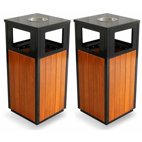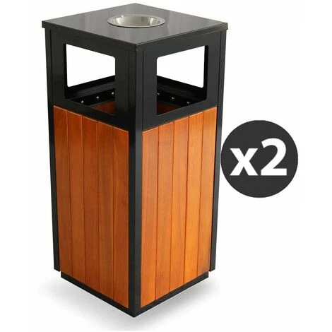 Lot de 2 poubelles en bois et acier avec cendriers pour espaces publics. Chaque poubelle intègre un bac intĂ©rieur en acier avec poignĂ©es et capable de contenir jusqu’Ă 26 L de dĂ©chets, ainsi qu’un cendrier en acier sur le couvercle. Celui-ci est amovible et permet d’accĂ©der facilement au contenu. L’extĂ©rieur de la poubelle avec cendrier est en bois de hĂŞtre, et rĂ©sistera sans difficultĂ©s Ă une utilisation en extĂ©rieur. Facile d’accès, chaque poubelle propose 4 grandes ouvertures sur les cĂ´tĂ©s.