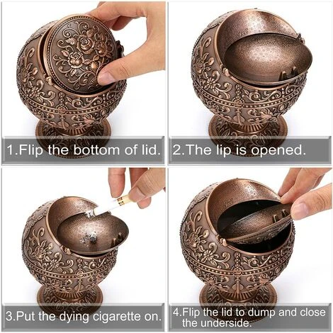 Couvercle semi-fermĂ© coupe-vent : ce cendrier vintage avec un couvercle flexible et rotatif et amovible empĂŞche les cendres de s’envoler et facilite la circulation de la fumĂ©e pour garder la pièce fraĂ®che. Il est très pratique pour ĂŞtre utilisĂ© aussi bien Ă l’intĂ©rieur qu’Ă l’extĂ©rieur.