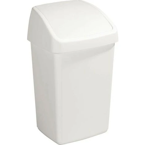 Poubelle en polypropylène avec couvercle à trappe basculante. Vidage par décochement de la tête. Capacité : 25 litres. Coloris blanc.