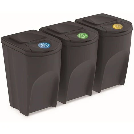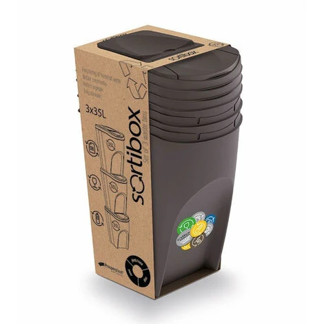 Lot de 3 bacs de recyclage de 35 litres de couleurs assorties pour papier, verre, plastique et organique.Le papier, le verre, le plastique ou le mĂ©tal rĂ©coltĂ©, soigneusement sĂ©parĂ© des dĂ©chets municipaux avec l’utilisation de solutions et d’accessoires modernes, devient une matière première prĂ©cieuse.Une attitude consciente, respectueuse de l’environnement et Ă©conomique n’a que des avantages : elle influe sur la limitation des dĂ©charges et l’utilisation rationnelle des ressources naturelles, en rĂ©duisant la pollution de l’air et de l’eau, en Ă©conomisant de l’Ă©nergie et en rĂ©duisant les coĂ»ts. Il est Ă©galement pratique et hygiĂ©nique pour une utilisation de l’espace de rangement qui est si prĂ©cieux Ă la maison.Sortibox rĂ©pond non seulement Ă ces exigences, mais fournit Ă©galement des capacitĂ©s de classification continue. Bien conçu, esthĂ©tique et spacieux (4 x 25 L), avec une structure spĂ©cialement conçue pour les espaces restreints, facilitant la disposition des segments en rangĂ©es ou poteaux stables.CapacitĂ© : 105 (35 x 3) litres. Dimensions : 39,2 x 29,3 x 45 cm (unitĂ©). Couleur : anthracite
