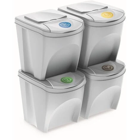 Lot de 4 bacs de recyclage de 25 litres de couleurs assorties pour papier, verre, plastique et organique.Le papier, le verre, le plastique ou le mĂ©tal rĂ©coltĂ©, soigneusement sĂ©parĂ© des dĂ©chets municipaux avec l’utilisation de solutions et d’accessoires modernes, devient une matière première prĂ©cieuse.Une attitude consciente, respectueuse de l’environnement et Ă©conomique n’a que des avantages : elle influe sur la limitation des dĂ©charges et l’utilisation rationnelle des ressources naturelles, en rĂ©duisant la pollution de l’air et de l’eau, en Ă©conomisant de l’Ă©nergie et en rĂ©duisant les coĂ»ts. Il est Ă©galement pratique et hygiĂ©nique pour une utilisation de l’espace de rangement qui est si prĂ©cieux Ă la maison.Sortibox rĂ©pond non seulement Ă ces exigences, mais fournit Ă©galement des capacitĂ©s de classification continue. Bien conçu, esthĂ©tique et spacieux (4 x 25 L), avec une structure spĂ©cialement conçue pour les espaces restreints, facilitant la disposition des segments en rangĂ©es ou poteaux stables.CapacitĂ© : 100 (25 x 4) litres. Dimensions : 39,2 x 29,3 x 33,5 cm (unitĂ©) 39,2 x 29,3 x 131 cm (empilĂ©s). Couleur : blanc