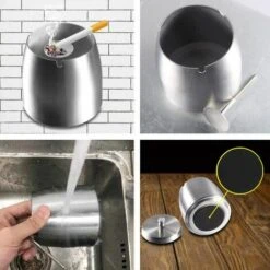 CENDRIER AVEC COUVERCLE: Le cendrier a un couvercle, le couvercle pourrait mieux sceller le cendrier, la hauteur et la capacité peuvent stocker beaucoup de petites choses et empêcher la poussière.