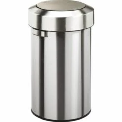 poubelle inox ronde à couvercle basculant 60l salsa, poignées de préhension embase plastique pour sacs de 100l