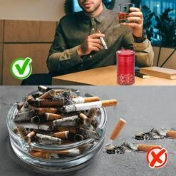 ăCoupe-vent et anti-pluieă Le cendrier en acier inoxydable avec couvercle peut empĂȘcher efficacement la fumĂ©e de voler pour garder l’Ă©tabli ou le bureau propre. et ne dĂ©gagent aucune substance nocive. Cette housse de cendrier peut garder votre voiture Ă l’abri de l’odeur de fumĂ©e, mettre la housse aprĂšs avoir Ă©teint la cigarette, Ă©liminer les odeurs et piĂ©ger efficacement la fumĂ©e.