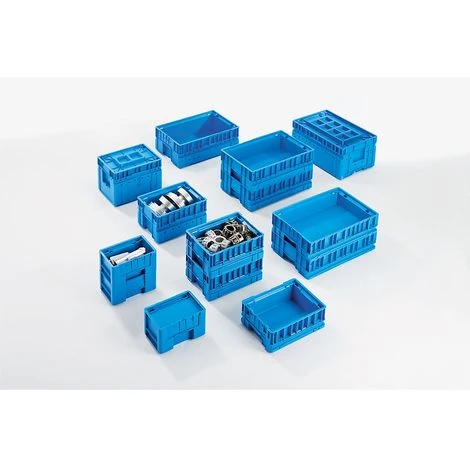 Bac en plastique Ă double paroi avec fond gerbable. Coloris bleu clair.