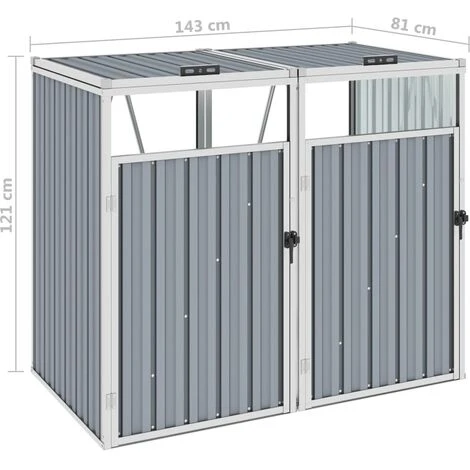 Cet abri Ă deux poubelles est en acier galvanisĂ© robuste, ce qui le rend très stable et facile Ă entretenir. Il est Ă©quipĂ© de deux portes Ă ouverture individuelle Ă l’avant et de poignĂ©es de porte en plastique noir. Ainsi, les poubelles peuvent ĂŞtre facilement retirĂ©es et vidĂ©es. L’abri de stockage a deux couvercles individuels qui peuvent ĂŞtre ouverts pour dĂ©poser facilement les dĂ©chets.